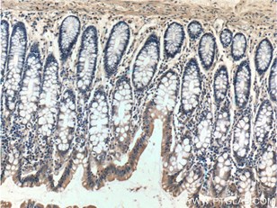 Immunohistochemistry of paraffin-embedded human colon tissue slide using 10783-1-AP( Bcl-xL Antibody) at dilution of 1:200 (under 10x lens). |