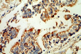 Immunohistochemical of paraffin-embedded human lung cancer using 12789-1-AP(BCL2 antibody) at dilution of 1:50 (under 40x lens) |