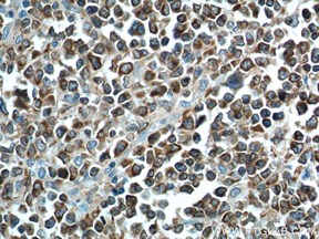 Figure 1. Immunohistochemistry of paraffin-embedded human tonsillitis tissue slide using 12789-1-AP ( BCL2 Antibody) at dilution of 1:50 (under 40x lens) |