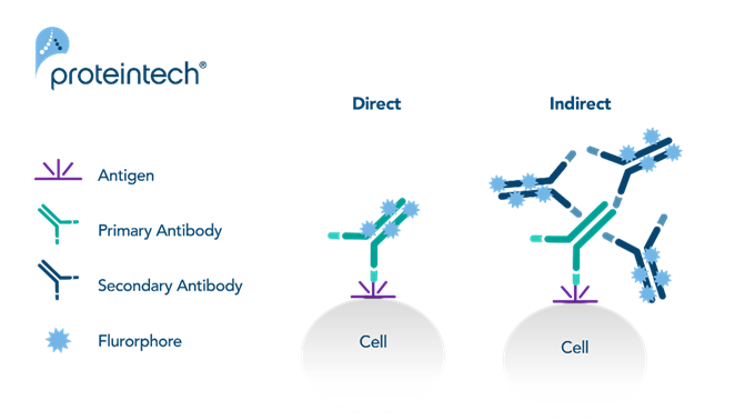 Indirect IF multiplexes are timely process, due to longer incubation times of multiple primary and secondary antibodies accompanied by several washing steps. Sequential incubation of unlabeled primary antibodies is often recommended for indirect multiplexed immunofluorescence, which adds further time to the entire process. Primary antibodies with directly conjugated fluorophores, such as our CoraLite® antibodies, lowers the number of steps in the protocol by allowing the simultaneous incubation of different primary antibodies, eliminating secondary antibody incubation and associated washing steps - thereby saving you a considerable amount of time