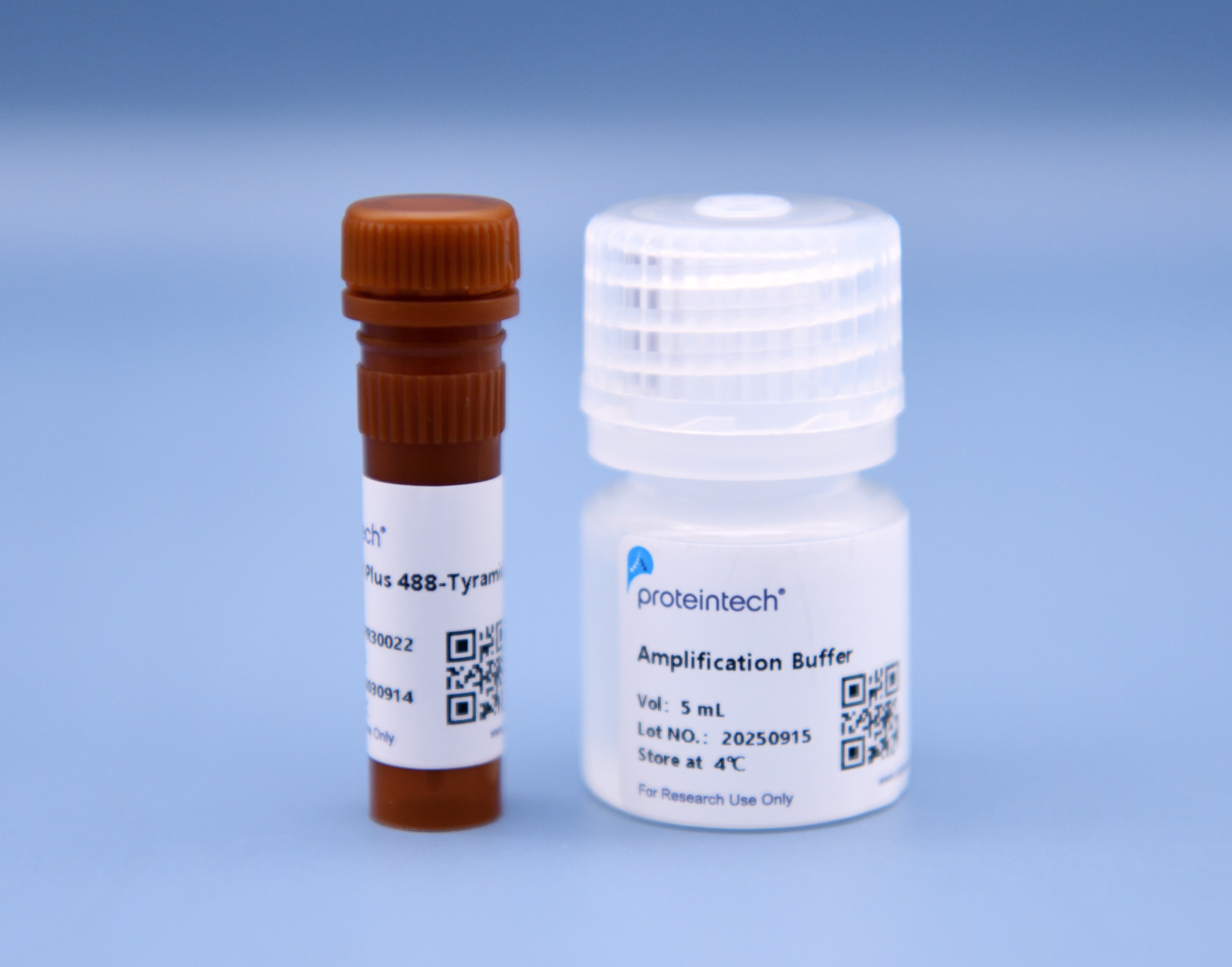本产品为50T规格,包含100 uL CoraLite®Plus 488-TSA染料和5 mL扩增液(Amplification Buffer),可以染常规组织切片或细胞爬片约50张/份,注意根据切片大小不同使用次数可能会稍有出入。实验中需要的其他试剂请自行准备或另购。